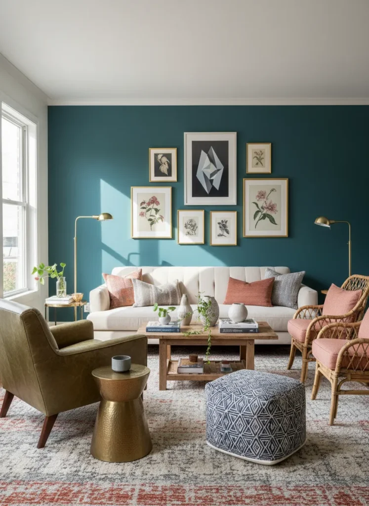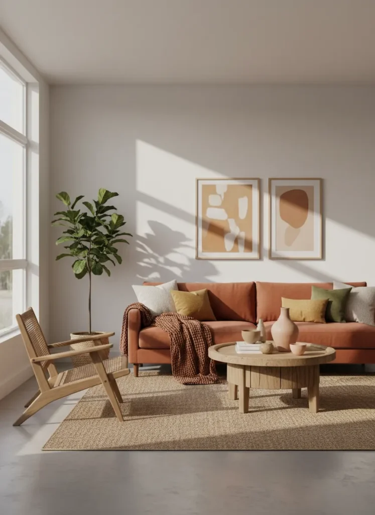 Color is the most powerful unifying thread in boho home decor, and building a thoughtful earthy palette is essential to a cohesive bohemian living room. In 2026, the boho aesthetic palette leans into terracotta, burnt sienna, warm sand, dusty rose, sage green, deep mustard, and chocolate brown as the core foundation tones. These hues are layered together through walls, textiles, furniture, and accessories to create a warm, grounded atmosphere that feels immediately inviting. Jewel tone accents — emerald, sapphire, plum — are increasingly popular in boho living room decor for adding depth and drama without abandoning the earthy warmth that defines the style.