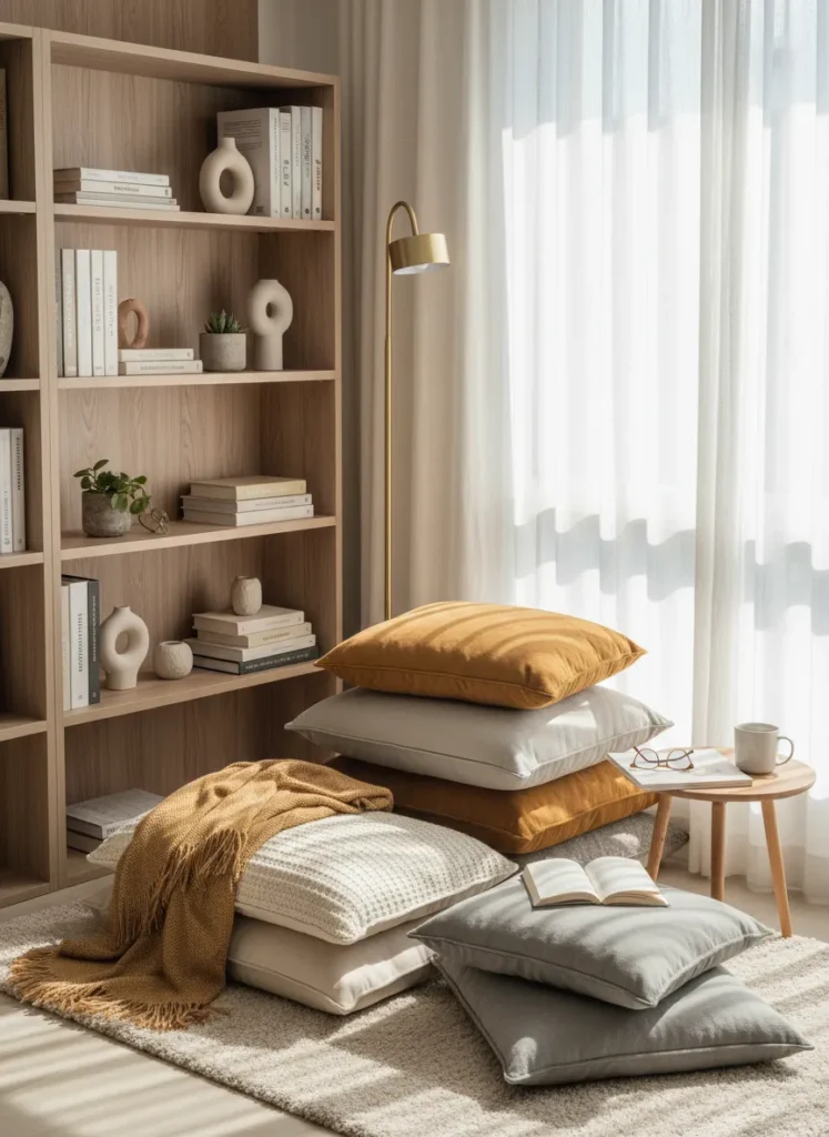 Every boho style home benefits from a dedicated cozy corner — a reading nook or meditation spot that embodies the slow, intentional living philosophy at the heart of boho aesthetic design. Pile oversized floor cushions and poufs in a sunny corner, add a low rattan side table for a candle and a cup of tea, hang a small macramé piece on the wall above, and drape a chunky knit throw nearby. A floor lamp with a woven shade provides warm, intimate light for evening reading. This kind of nook is a perfect expression of boho interior design values — comfort, simplicity, and a deep appreciation for quiet, unhurried moments at home.